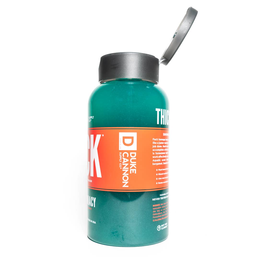 That's why Duke Cannon's THICK is formulated with a noticeably higher viscosity and built to work effectively on your body, not spew down the shower drain. The aquatic scent blends notes of fresh water, open-air, and bergamot. Smells like Naval Supremacy.