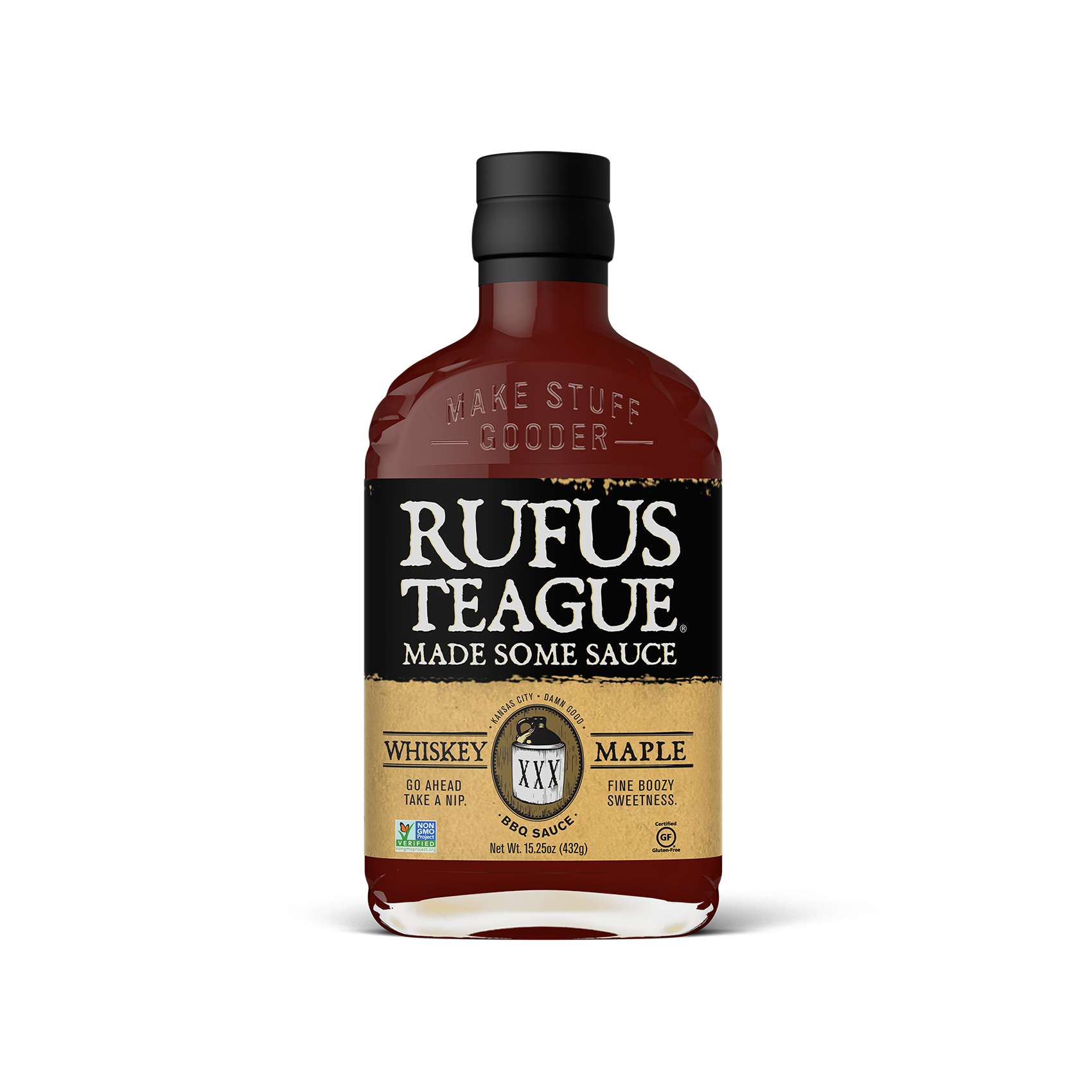 This is the real deal, not some cheap knockoff. As with all Rufus Teague sauces, we cook them longer, so they are less watery, and the flavor is more intense. Made with the finest natural ingredients, Whiskey Maple has a classic tomato-base and is sweetened with real sugar and molasses for a deep and distinguished taste. So, make your food happy and remember, “Good sauce makes bad barbecue good and good barbecue gooder.”