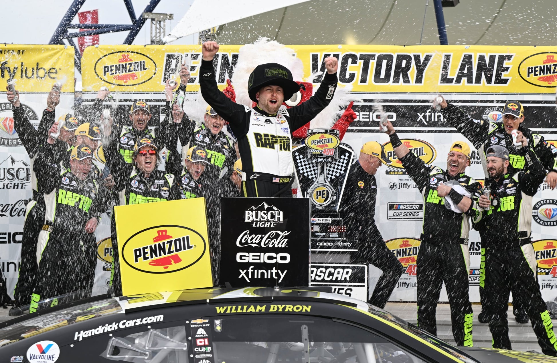 Show your true racing spirit with this William Byron #24 RAPTOR Black Noggin! With its bold design featuring Byron's number and the Raptor logo, you'll be sure to make a statement. Show your enthusiasm for fast cars and thrill-seeking!