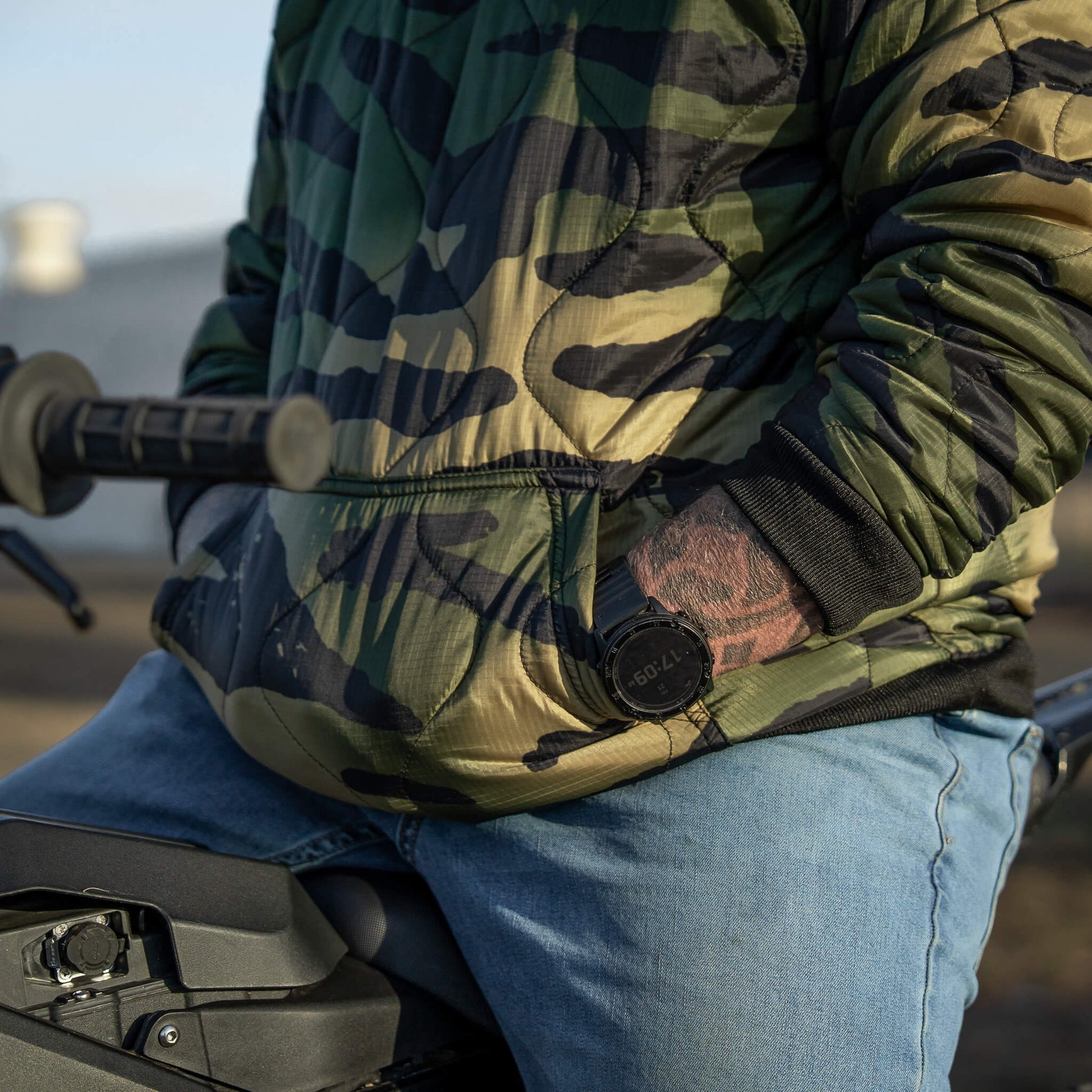 Men’s military-inspired insulated woobie-style hoodie with sleeping-bag-style warmth, durable outer shell, and relaxed athletic fit for outdoor use and all-day cold-weather wear.