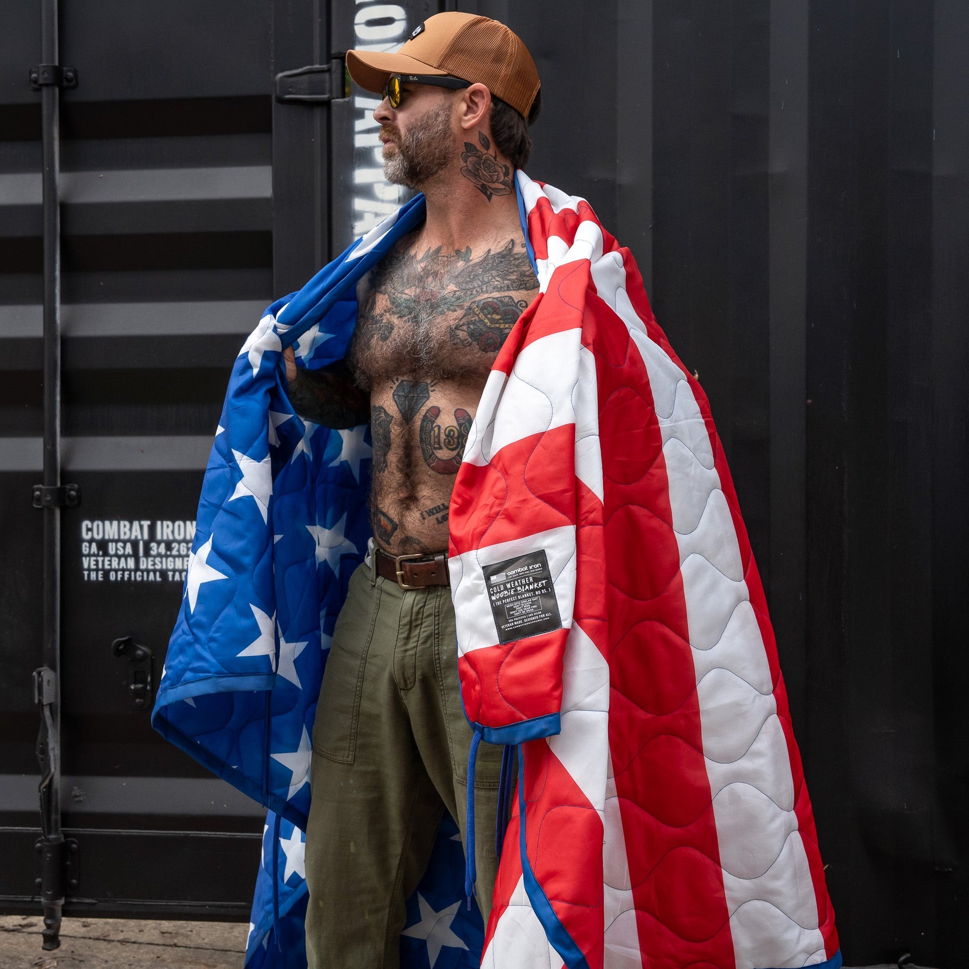 Measuring 62” wide by 82” tall, our branded Woobie blanket is made for full-body coverage without the bulk. Featuring a durable, water-resistant outer layer and a soft, cozy interior, it’s built tough for outdoor adventures but comfortable enough for everyday use. Equipped with corner tie-down strings, this blanket can double as a liner for your sleeping bag or be used as a makeshift cover, making it perfect for camping, hunting, or tactical use.